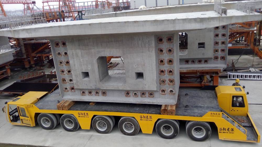 都知道橋梁運輸車在橋梁工程建設中被大量采用,我公司生產運梁平車,為橋梁運輸的專用運輸車。 我公司生產的有900、200、160、120噸輪胎式等。 主要結構:橋梁運輸車主要由車架、動力(發動機)、變速傳輸機構、方向液壓控制系統、啟動裝置、充電系統、承載裝置等部分組成。